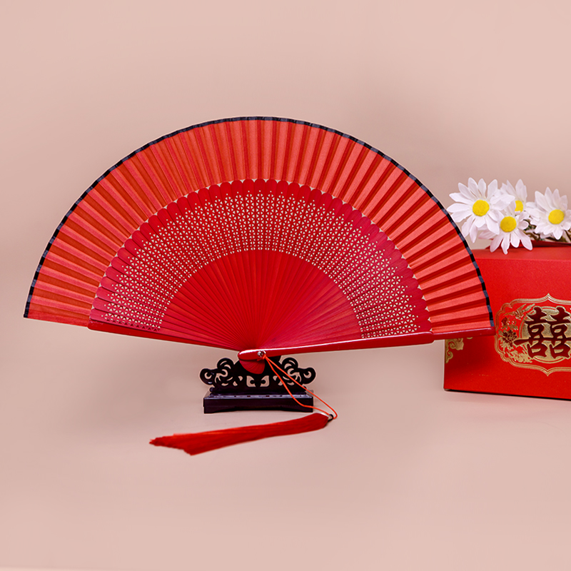 Chinese style big red women's dance dancing fan ancient style Hanfu portable folding fan model catwalk 7 inches 23cm