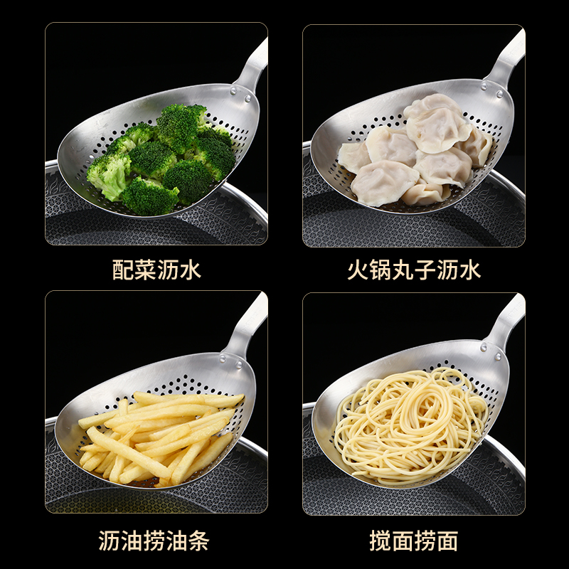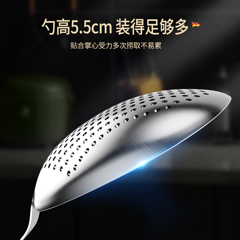 German Grand Leaky Spoon Home Kitchen 304 Stainless Steel Filter Oil Cooking Noodle Mesh Mixed Pasta Hot Pot Water Dumplings Long Stem