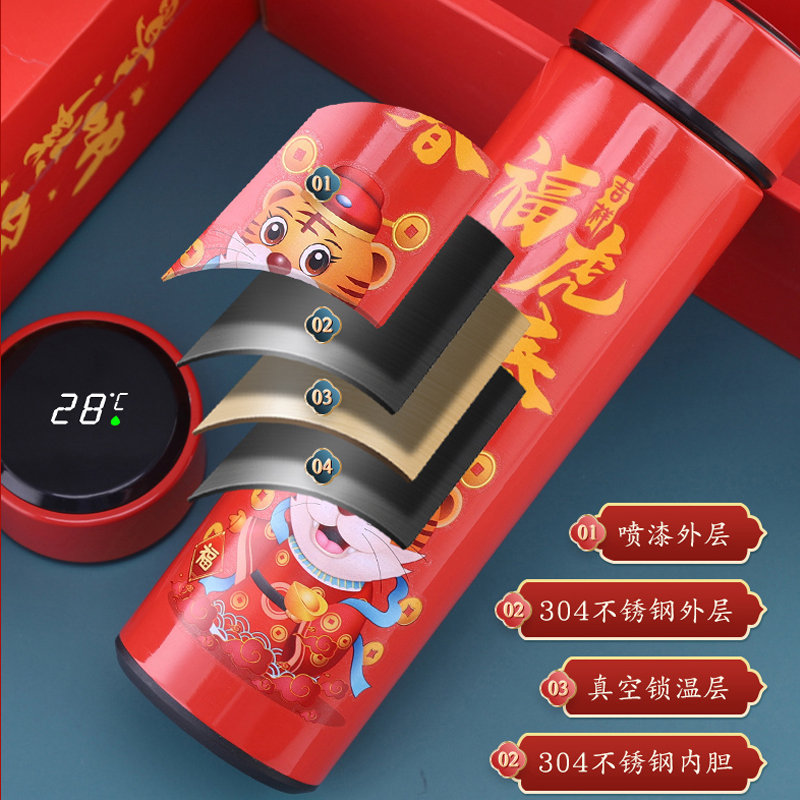 one thousand Clear Tiger Tiger Raw Vegwen 304 Stainless Steel Insulated Cup New Year Open Door Red Annual Meeting Gift QCHHSW-1
