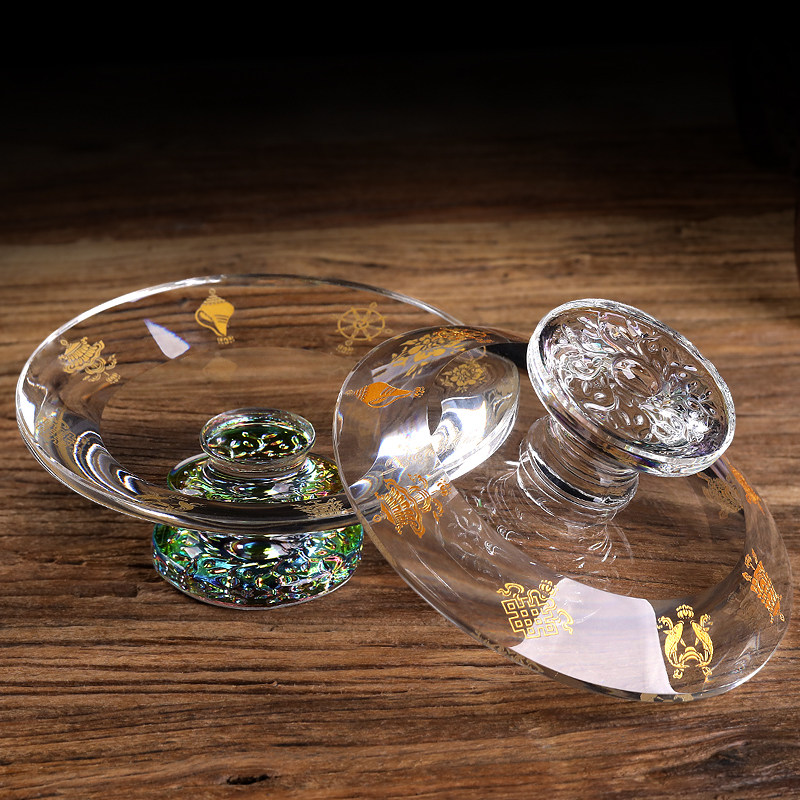 Crystal color painted 8 auspicious lotus flower for fruit pan tribute pan transparent fruit dish Home Guanyin Buddha Former dedicated to fruit tray