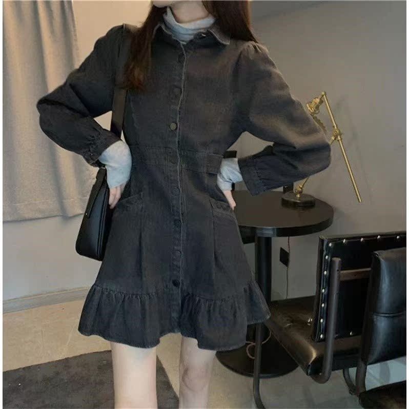 French denim dress women autumn and winter New Large size fat mm age reduction temperament loose thin Joker leaf skirt