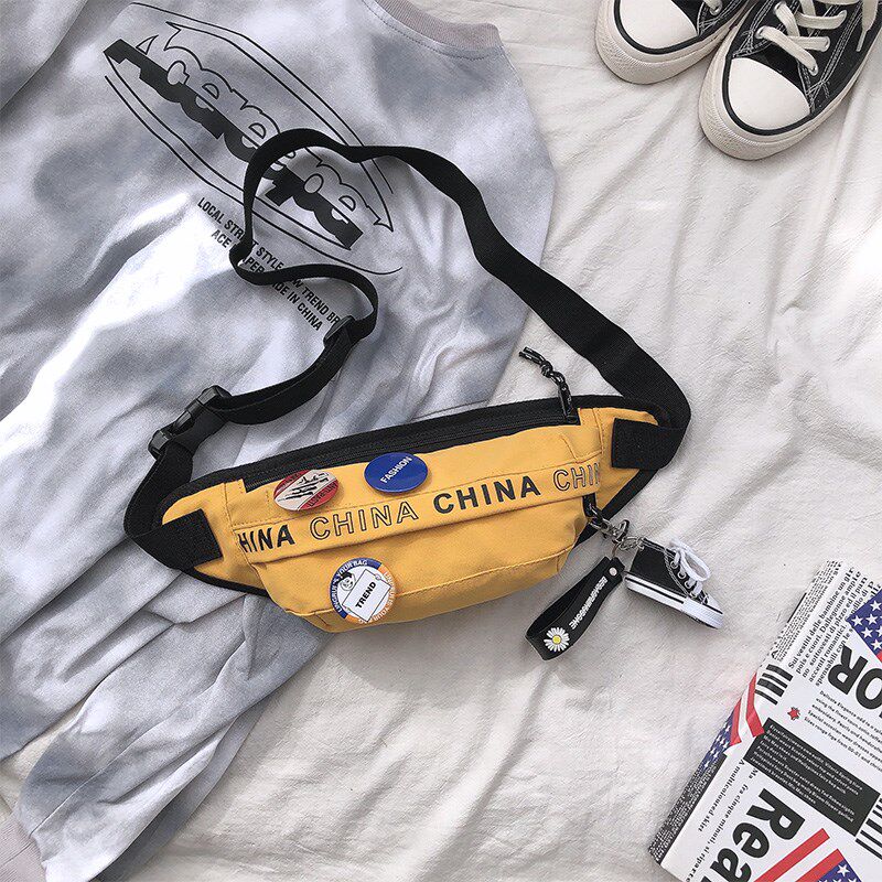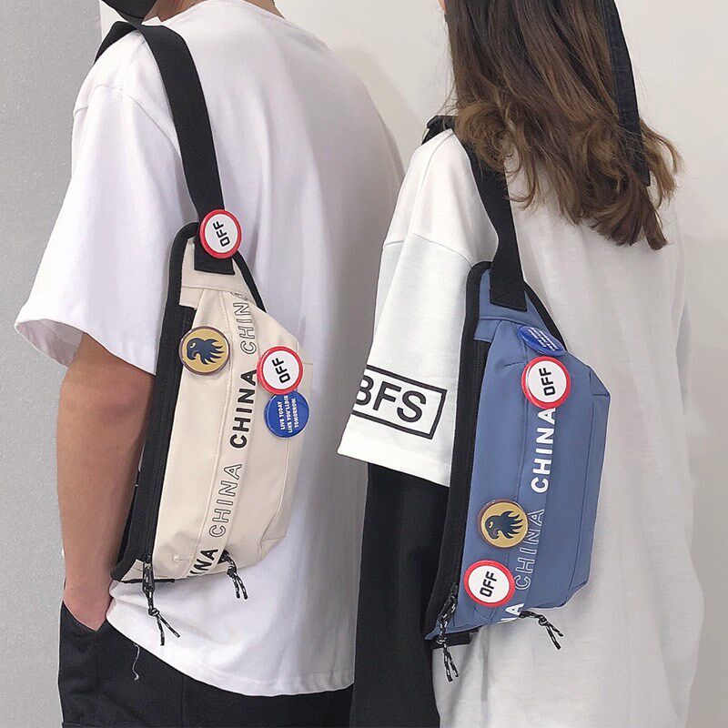 Hong Kong Tide Card Men's Chest Bag Denim Fabric Fashion Diagonal Satchel Street Youth Hip Hop Purse Canvas Casual Satchel Bag