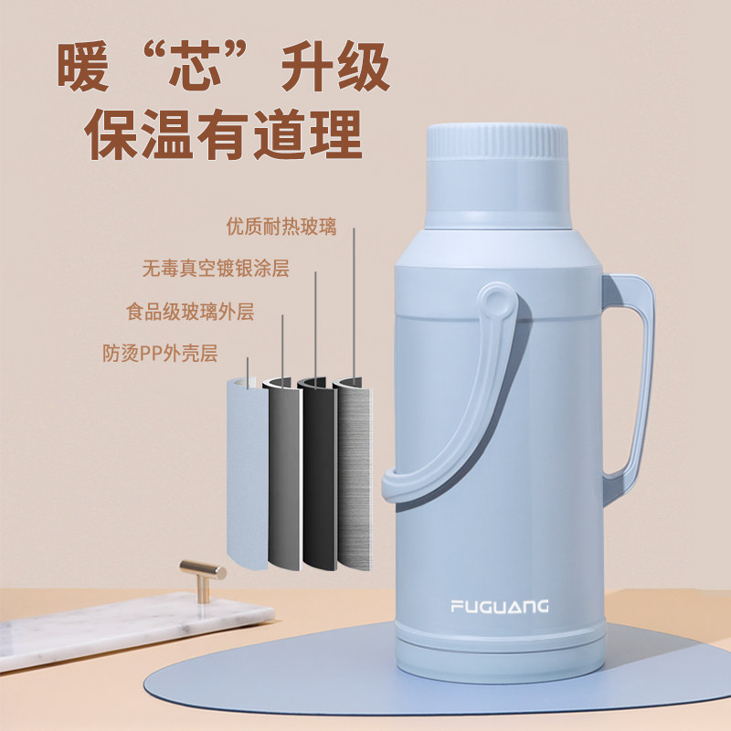Fuuang household ordinary hot water bottle large warm kettle plastic shell insulation water bottle for student dormitory 3 2L
