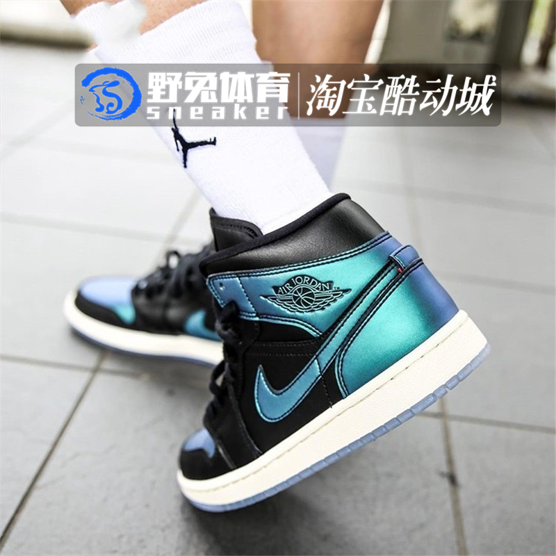 Air Jordan 1 Mid AJ1 Black Turquoise Chameleon BQ6472-009
