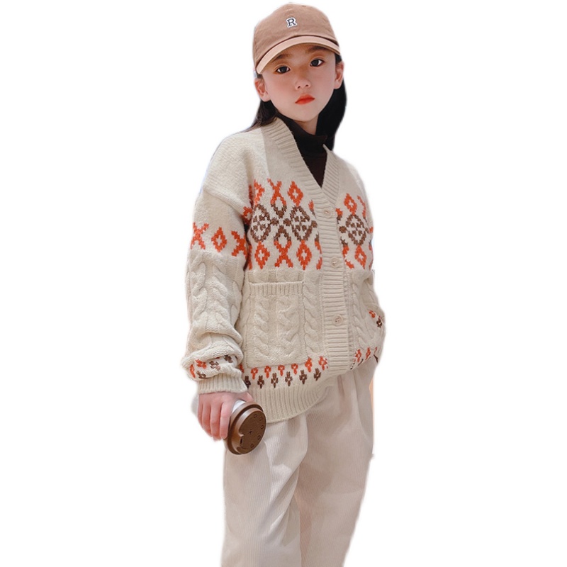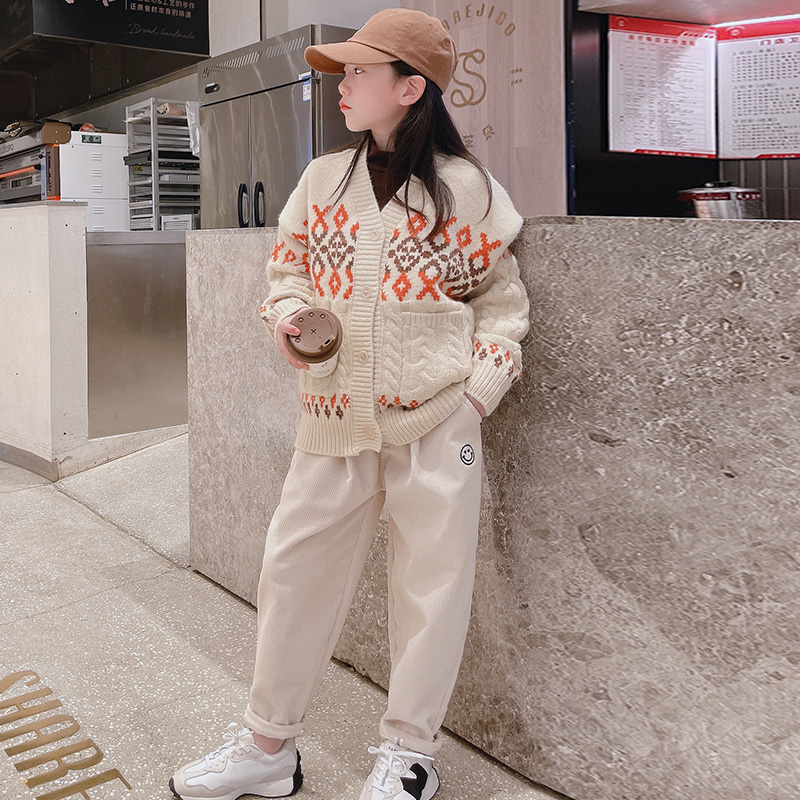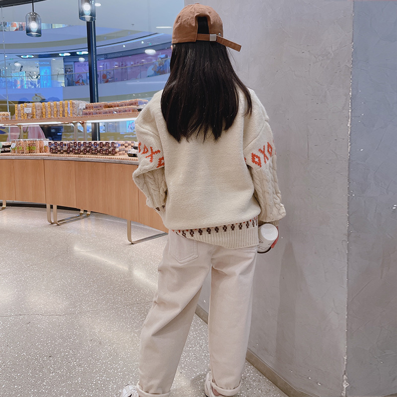 South Korean boy clothing sweaters girl boy covered with jumpsuit 2021 autumn and winter thickened loose outside wearing a CUHK child-knit cardiovert