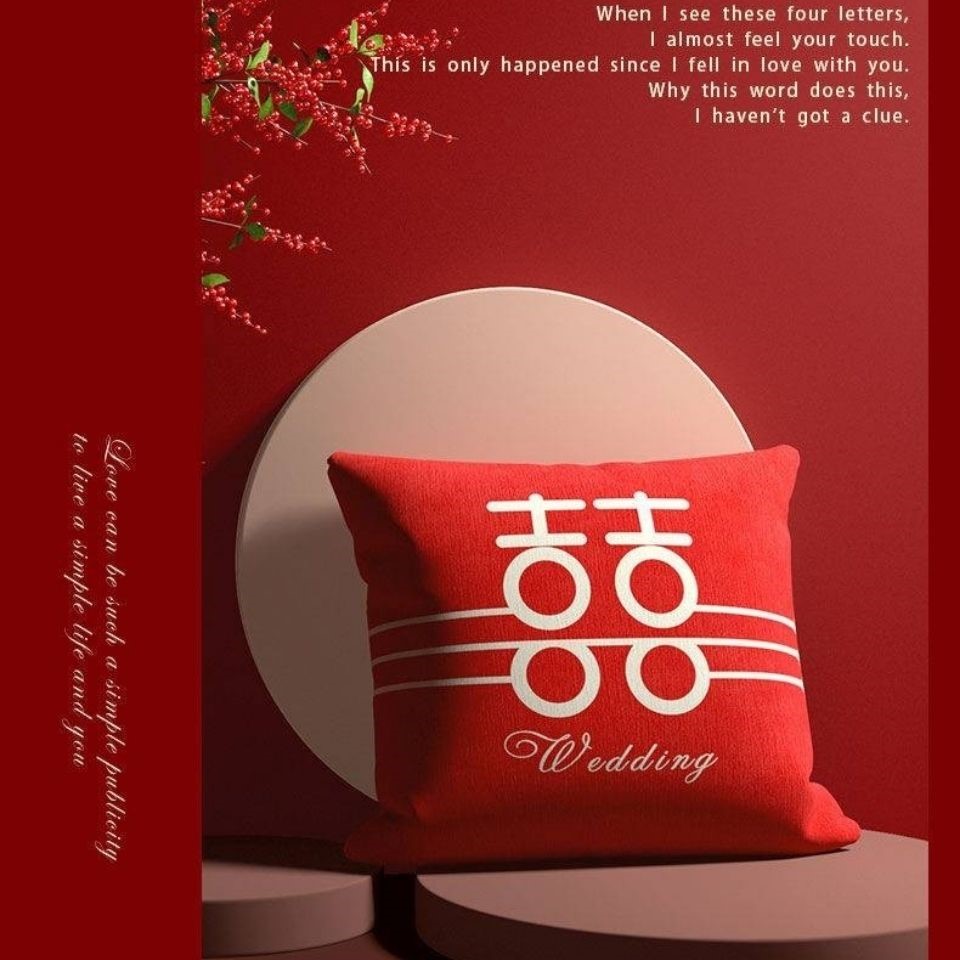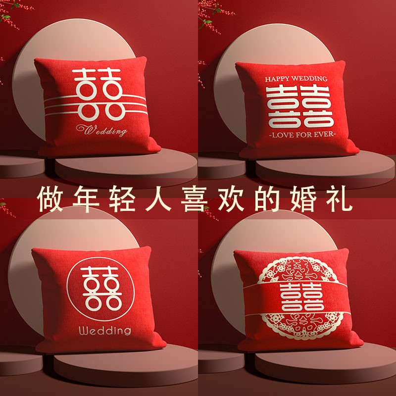 A pair of red pillows for wedding celebration, living room wedding sofa cushion wedding wedding room decoration festive wedding gifts