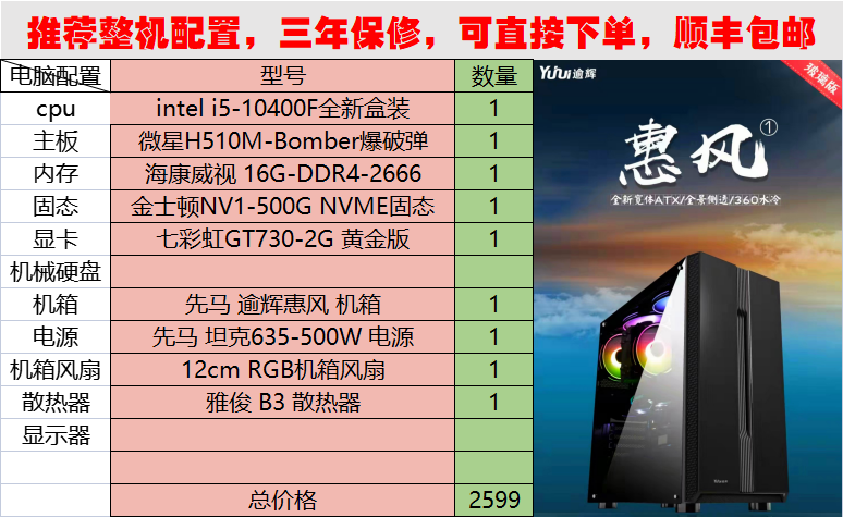IntelIntel i5 10400F brand new boxed Huasu Microstar Motherboard Gaming Computer host suit