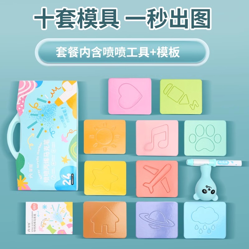 (Soft tip acrylic) 12-color airbrush ❤ Comes with 8 mold cards (Soft tip acrylic) 24-color airbrush ❤ Comes with 8 mold cards (Watercolor pen) 12-color airbrush (the pattern color is random