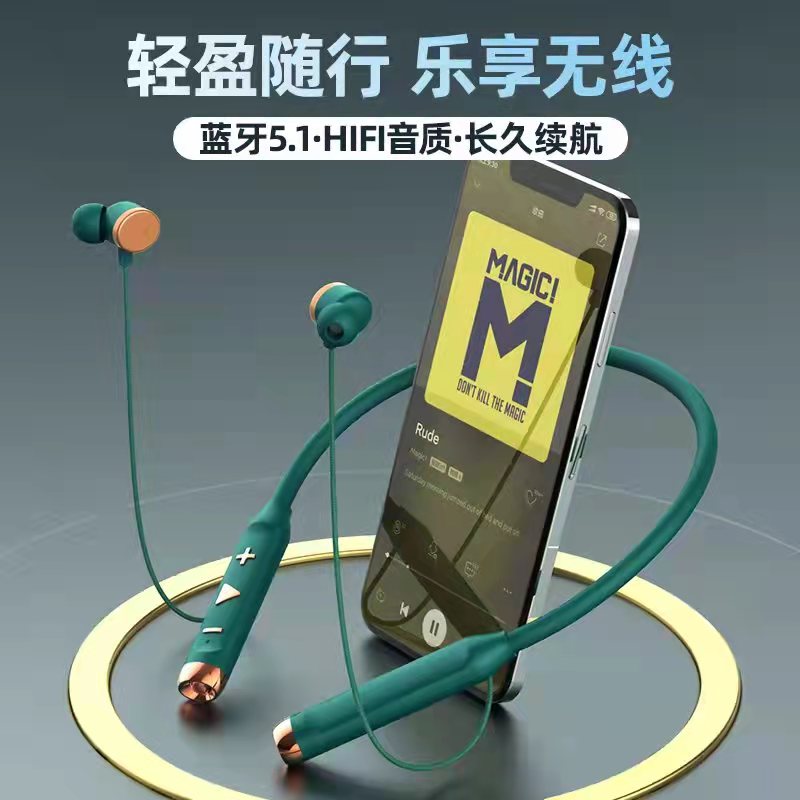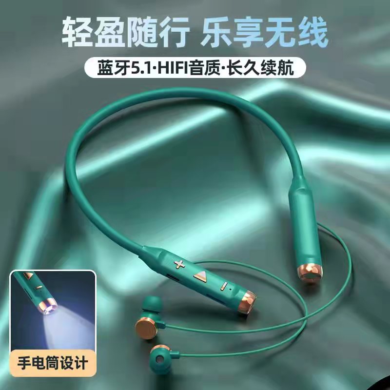 (with flashlight) wireless sports bluetooth headset neck-mounted pluggable mobile phone universal