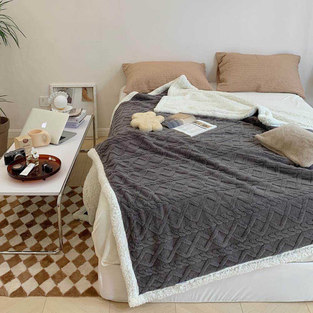 Sleep well - sleep and thicken cotton lamb fluff blanket boyfriend wind - lift cover to warm coral fluff sofa blanket