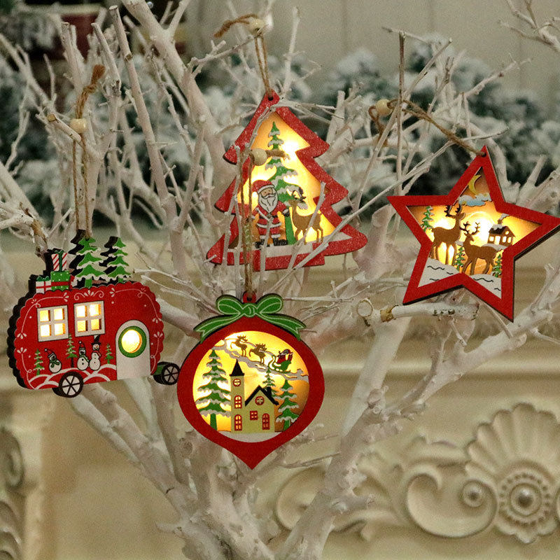 Christmas decoration supplies Christmas tree pendant wooden color luminescent small pendant Christmas tree decoration small gift