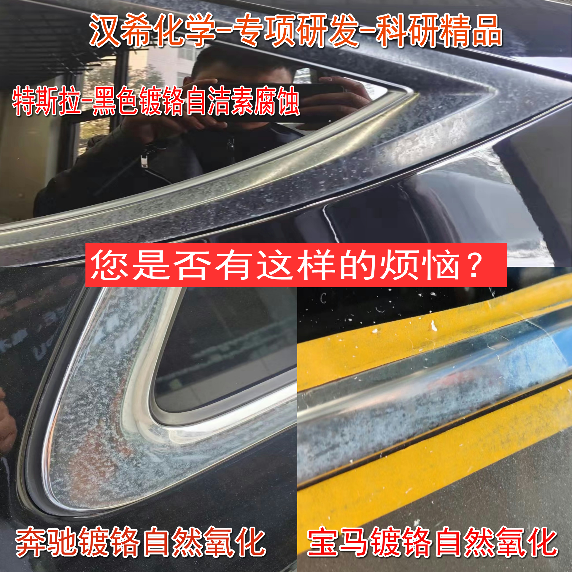 Mercedes BMW Audi Tesla Foss car window chrome-plated bright strip polishing repair oxidation self-cleaning element corrosion white spot