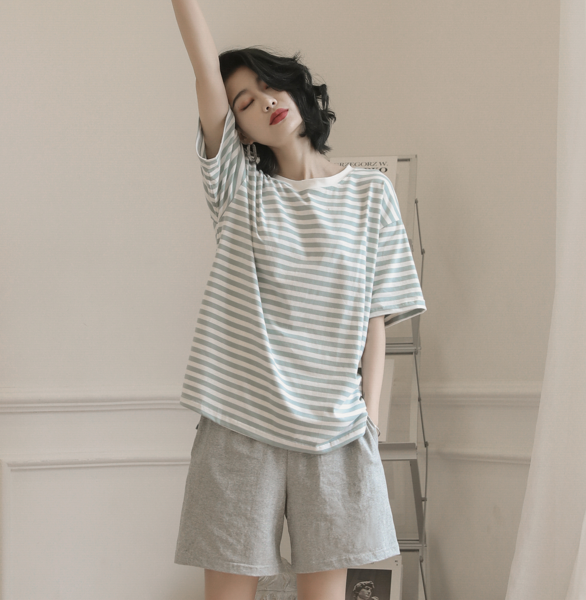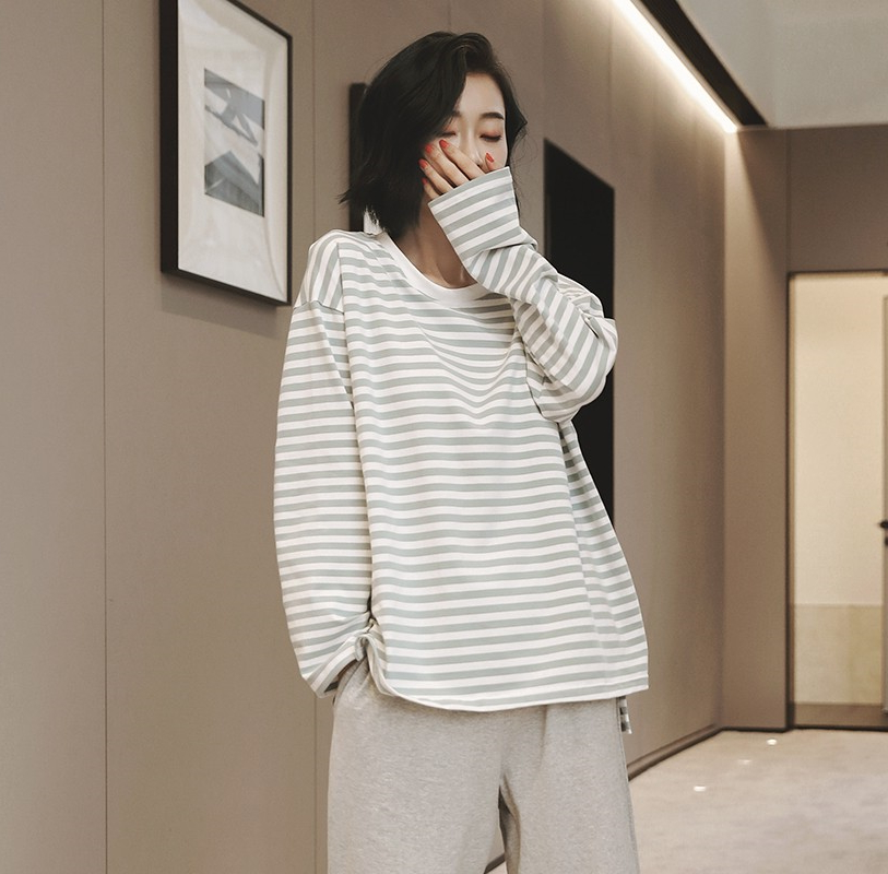 Japanese Niche GP Pyjamas Women's Spring Autumn Summer Pure Cotton Long Sleeves Full Cotton Loose Stripes can be worn outside the home Suits Suit-Taobao
