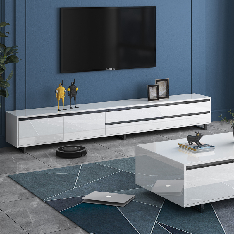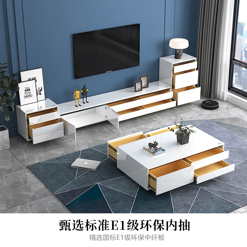 TV Cabinet Tea Table Composition Modern Minima Size Family Living Room Light Lavish Cabinet Tempered Glass High And Low Cabinet Customised