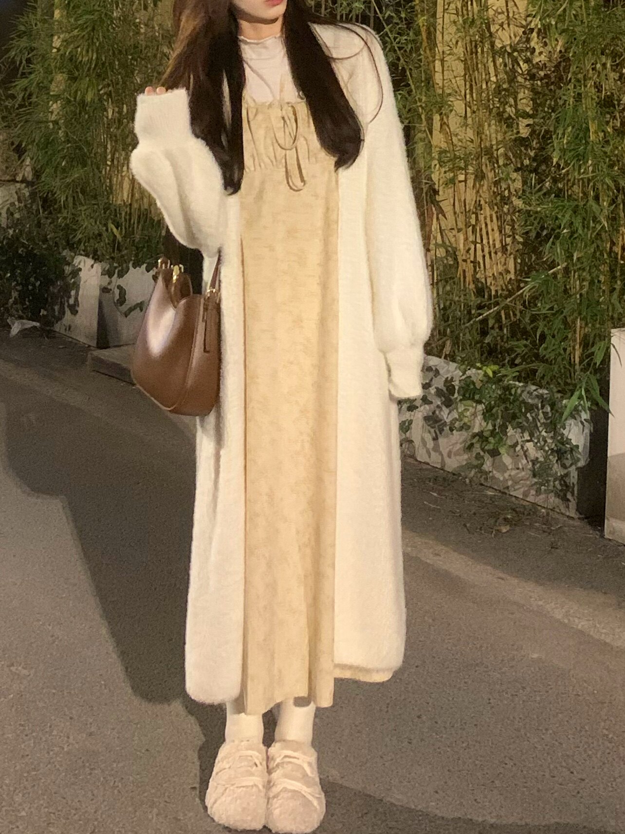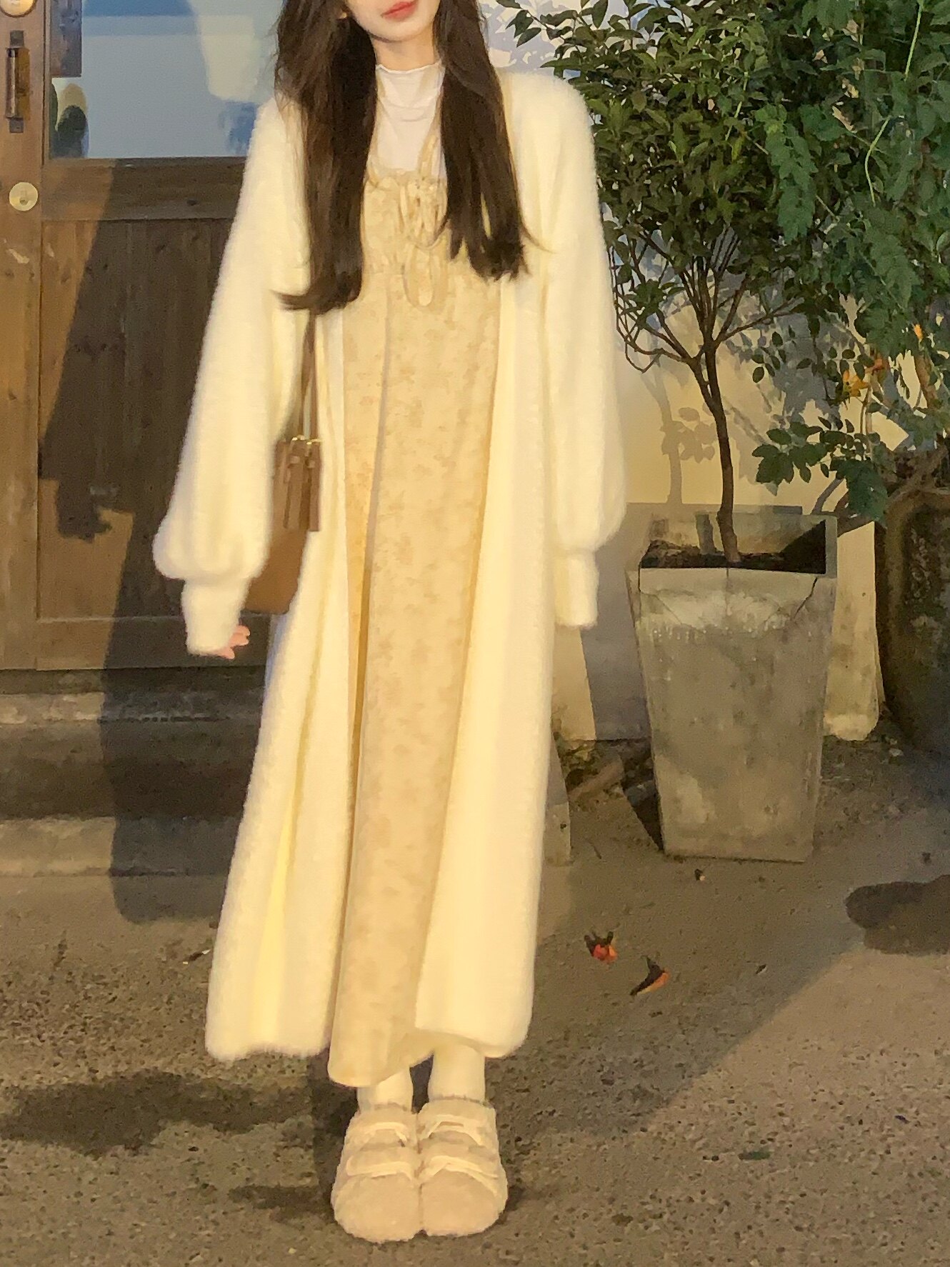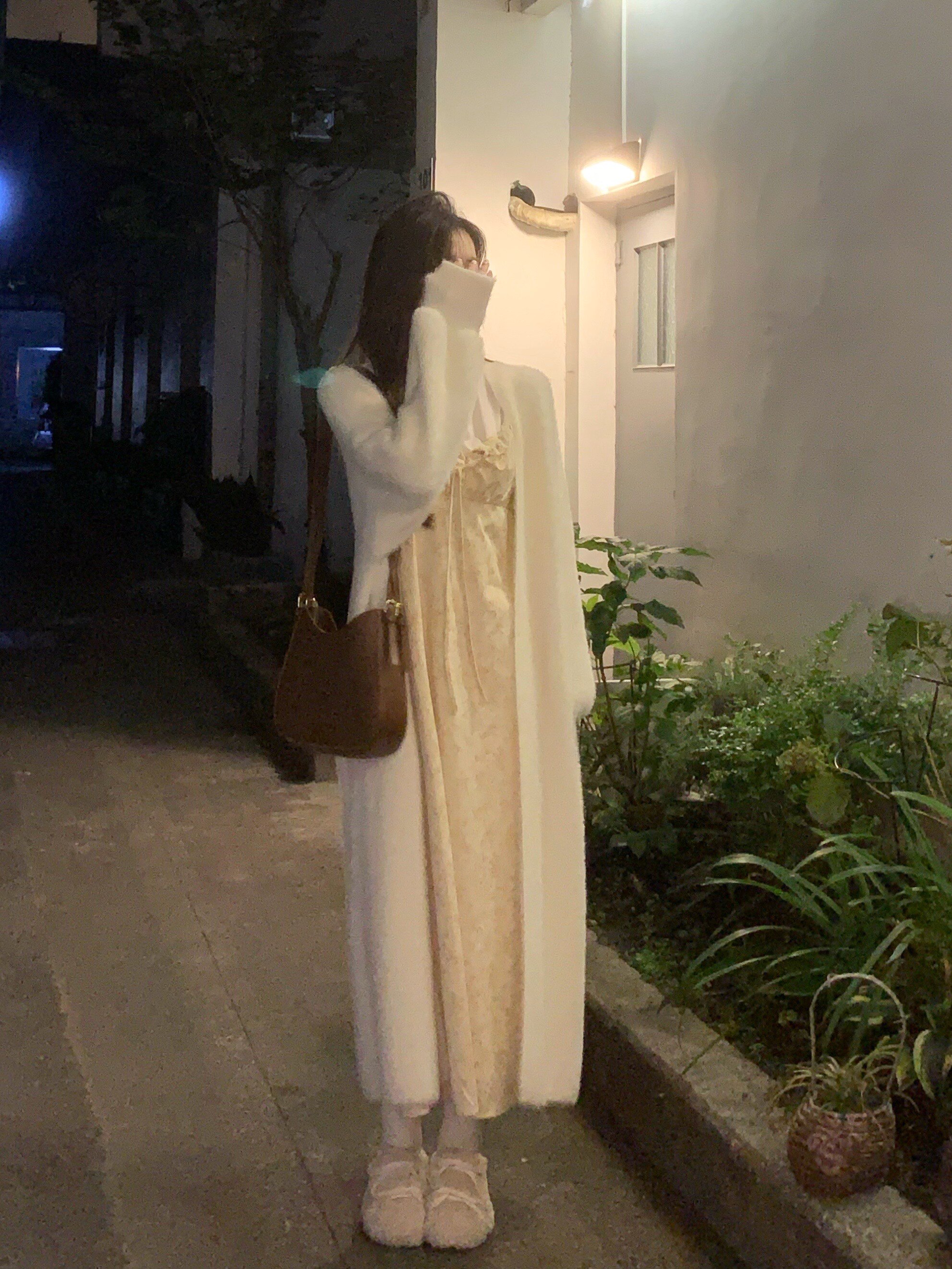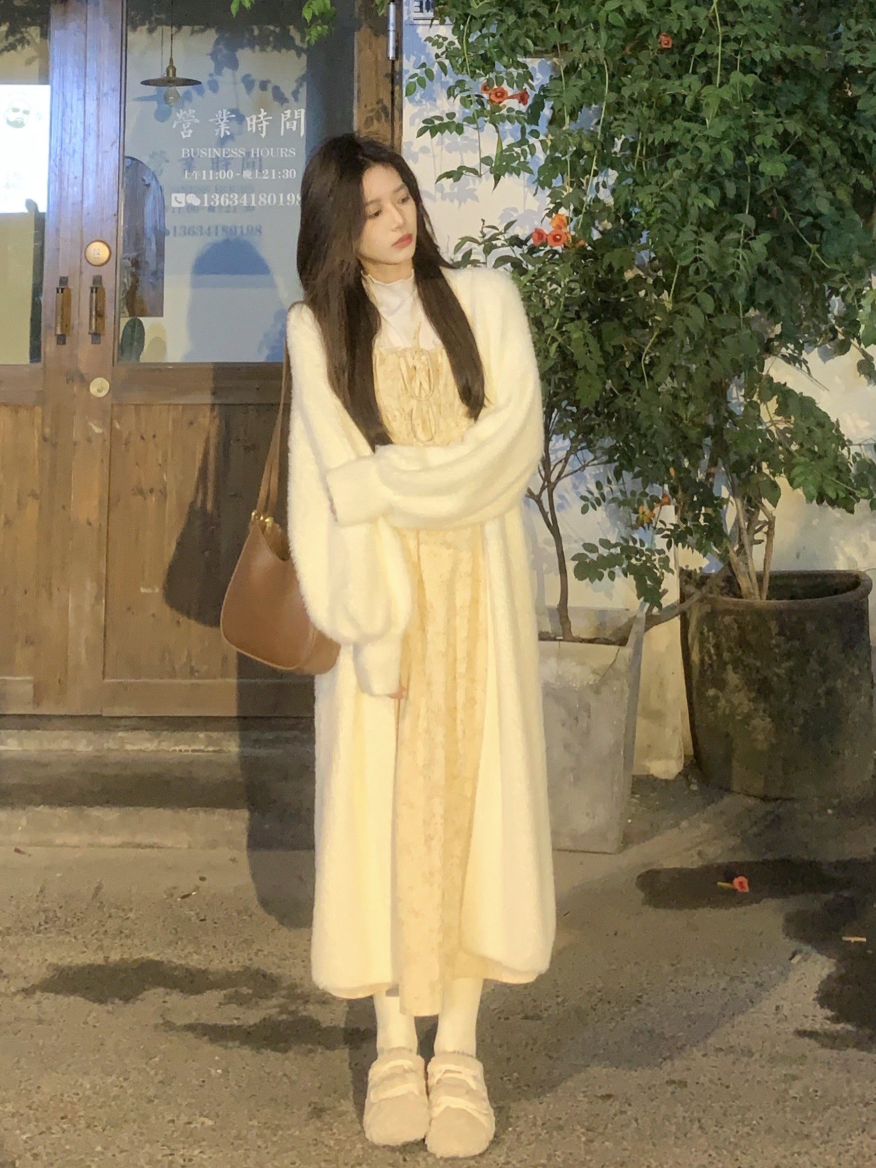 A sweet peach yikett winter article gentle white moonlight mink velvet mid-length sweater knitted cardigan coat women