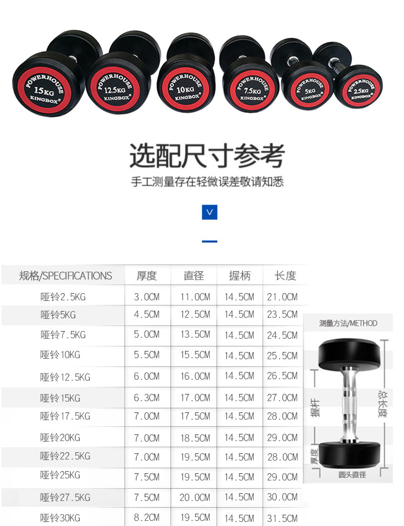 Red Mark Round Head Fixed Dumbbells Rubber Clad Iron Solid Sports Cast-iron Fitness Room Studio Home Fitness Equipment