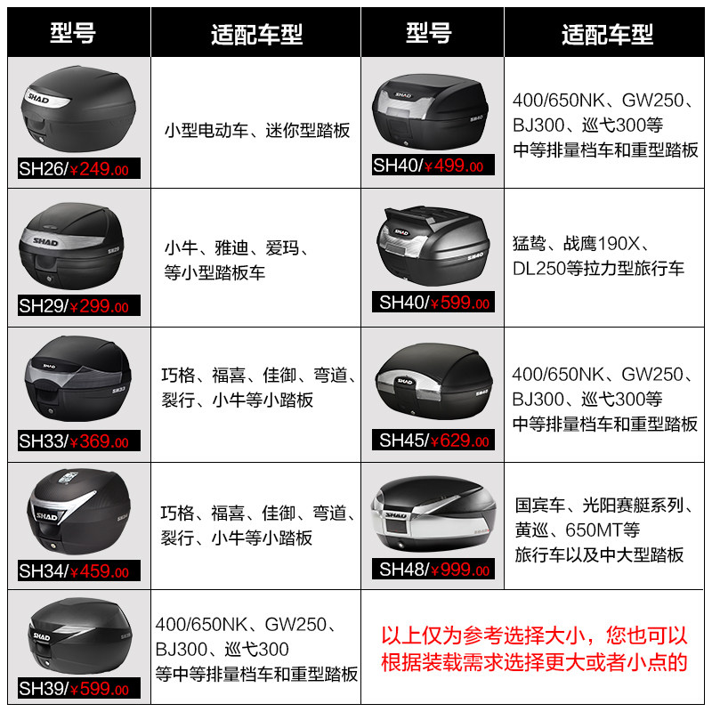 SHAD26 liters (send the lower lining) SHAD29 liters (send the upper and lower linings) SHAD33 liters (send the upper and lower linings) SHAD34 liters (send the upper and lower linings) SHAD