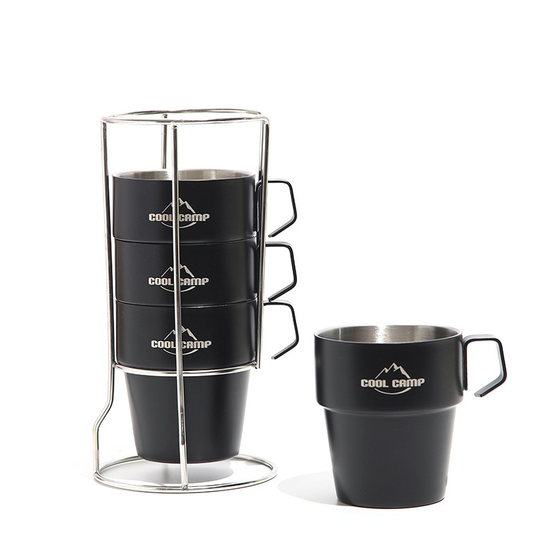 Thickened 304 stainless steel coffee cup thermal insulation anti-scalding double cup outdoor camping barbecue portable water cup tea cup 4 pieces-Taobao