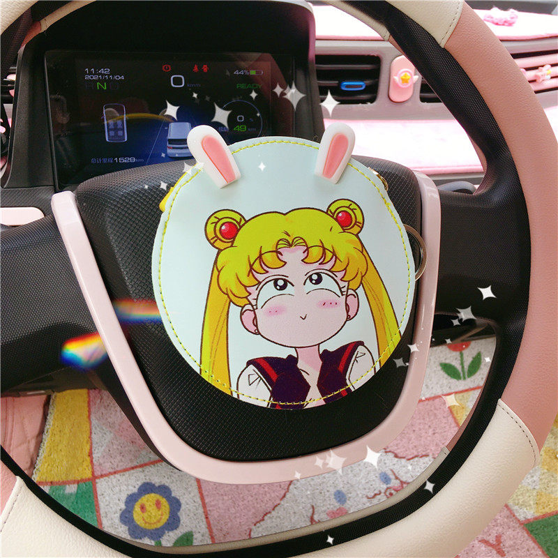 Five Diamond Macro Light Mini Steering Wheel Sleeve Cute Car Steering Wheel Handlebar Sleeve Trim Mini EV macaron accessories-Taobao