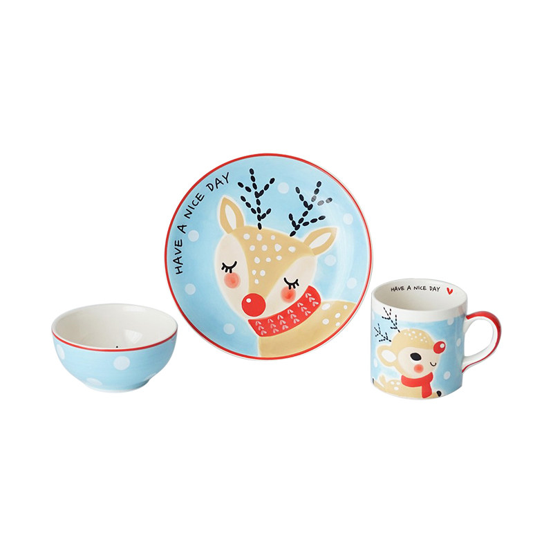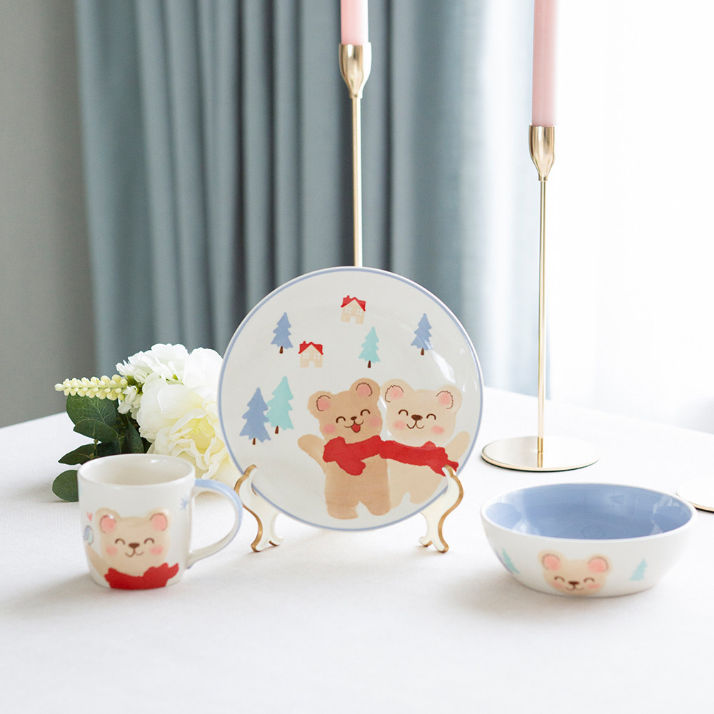 PAGOO Children's Cartoon Ceramic Tableware Set Thailand Imported Rice Bowl Mug Egg Cup Cute Breakfast Plate