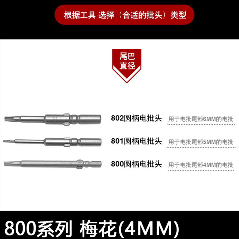 Shaowei plum blossom batch head Tsui S2 steel 800 type round handle 4mm electric screwdriver 60mm long T5T6T8T9T10