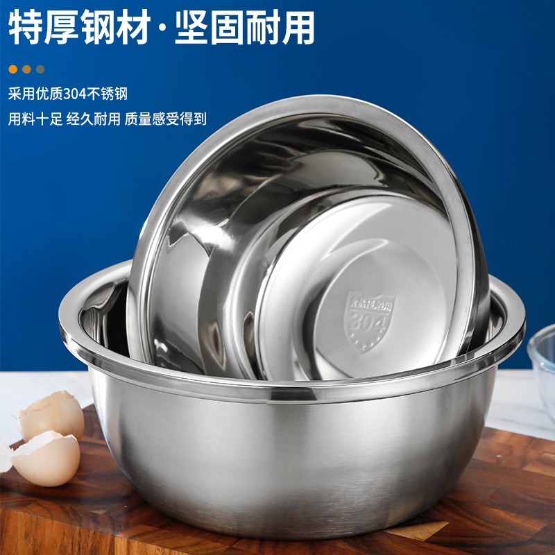 304 stainless steel basin food-grade home kitchen and basin baking egg-beating basin extra thick and deepening soup basin washing basin