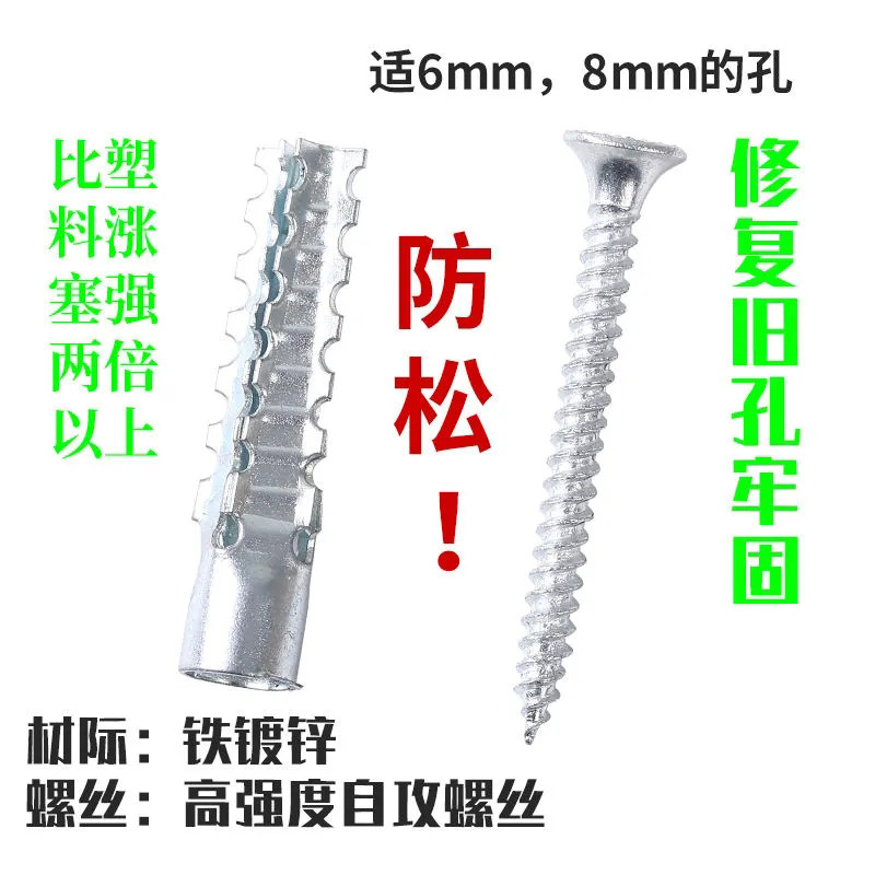 Expansion plug 8mm6mm lengthened gypsum board metal iron self-tapping screw expansion tube m6 set expansion screw Daquan