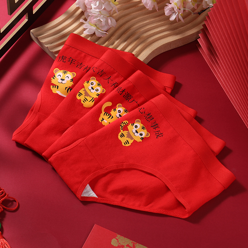 3 Pack Ladies Benming Year Big Red Underpants Tiger Underpants Women's Cotton Antibacterial Wedding Briefs