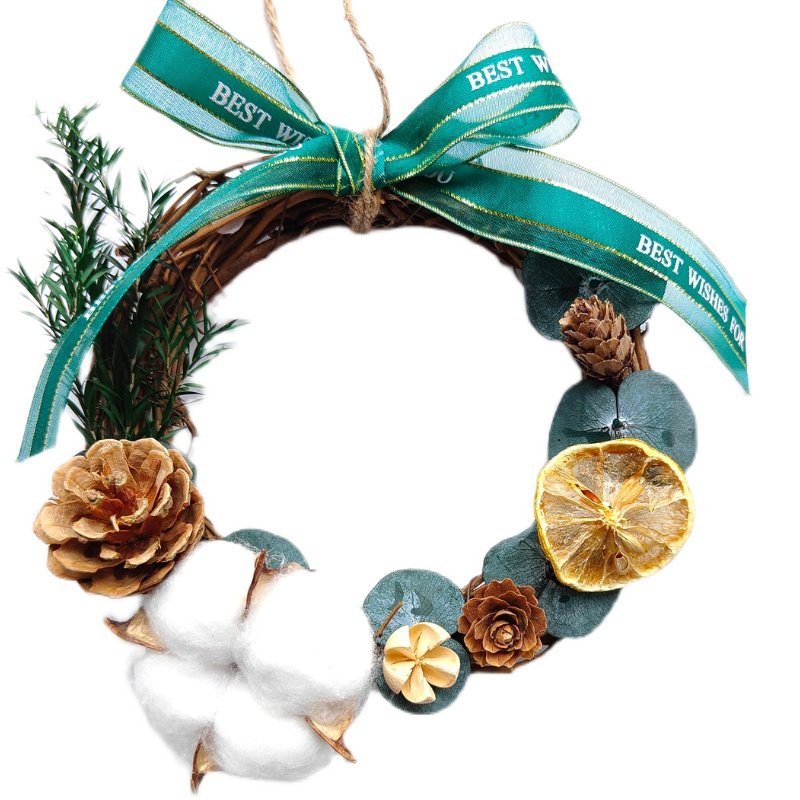 Christmas Flower Ring Vine Ring Handmade Hanging Accessories DIY Materials Bag Dry Flowers Pine Nuts Car Pendant Door Hanging Bell Butterfly Knot Activity