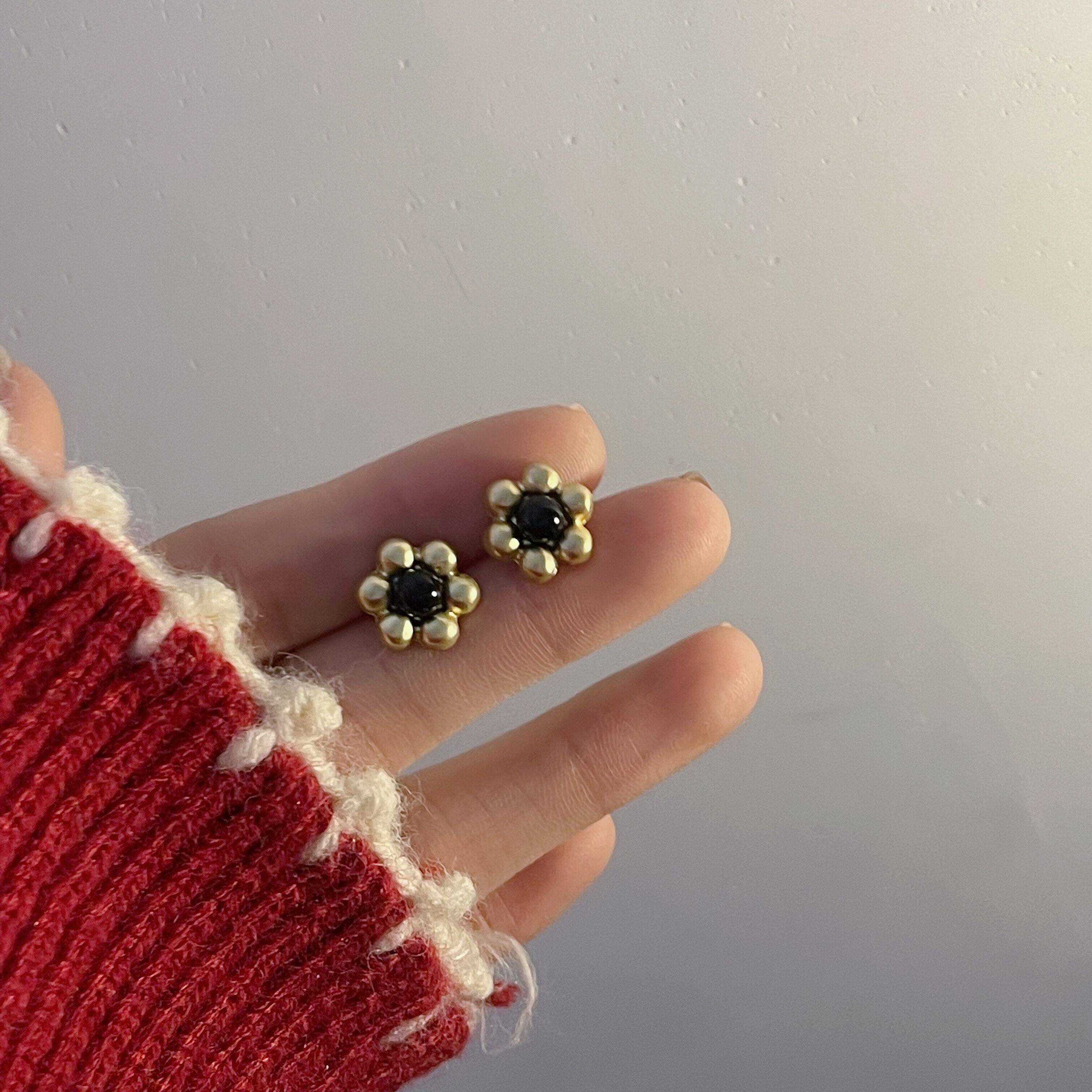Sunflower is small and matt gold advanced feel earrings French style retro small ear decoration delicate without earhole invisible ear clip woman