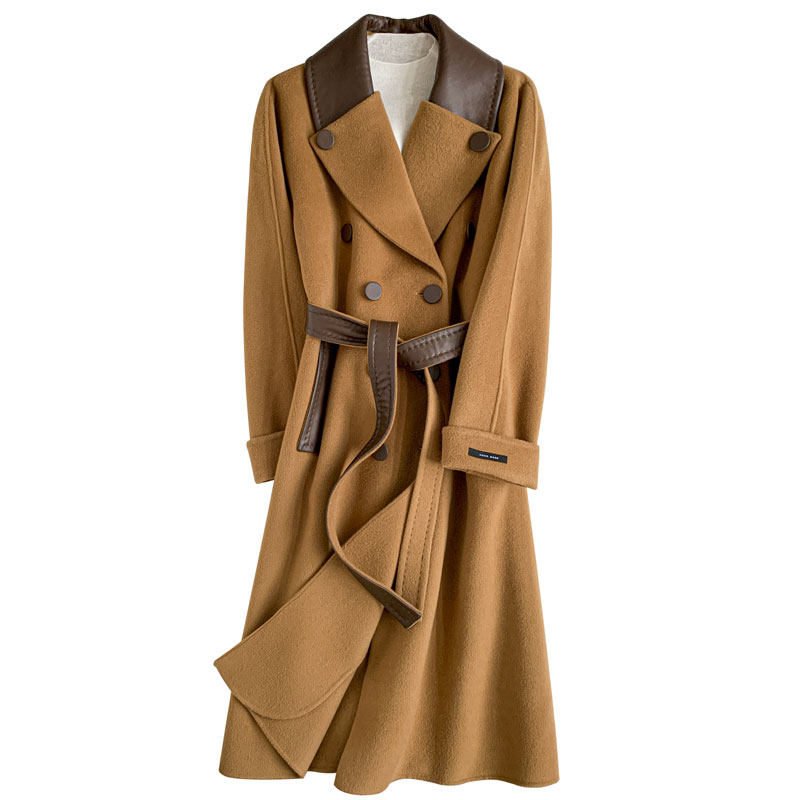 Limited edition 669 European station light luxury sheepskin stitching double-sided cashmere coat woolen coat women's autumn and winter 2022 new style