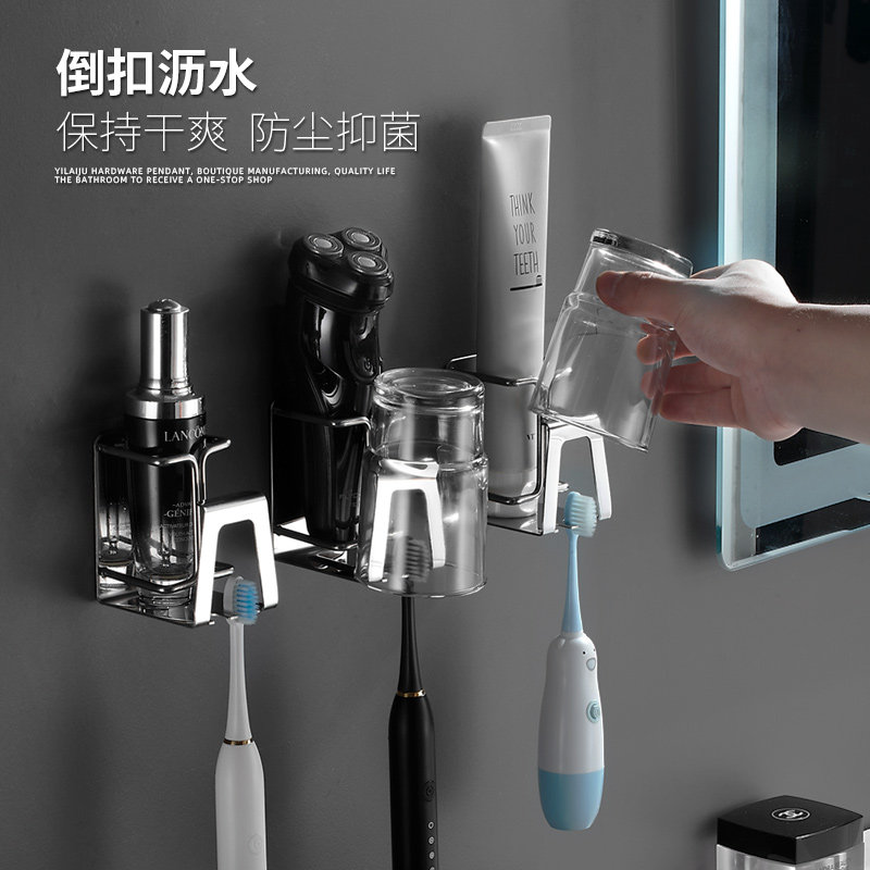 Light Extravagant Toothbrush Holder Wall-mounted Free Toothpaste Toothbrush Cups Shelve 304 Stainless Steel Toiletries Cup Racks