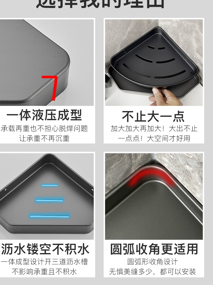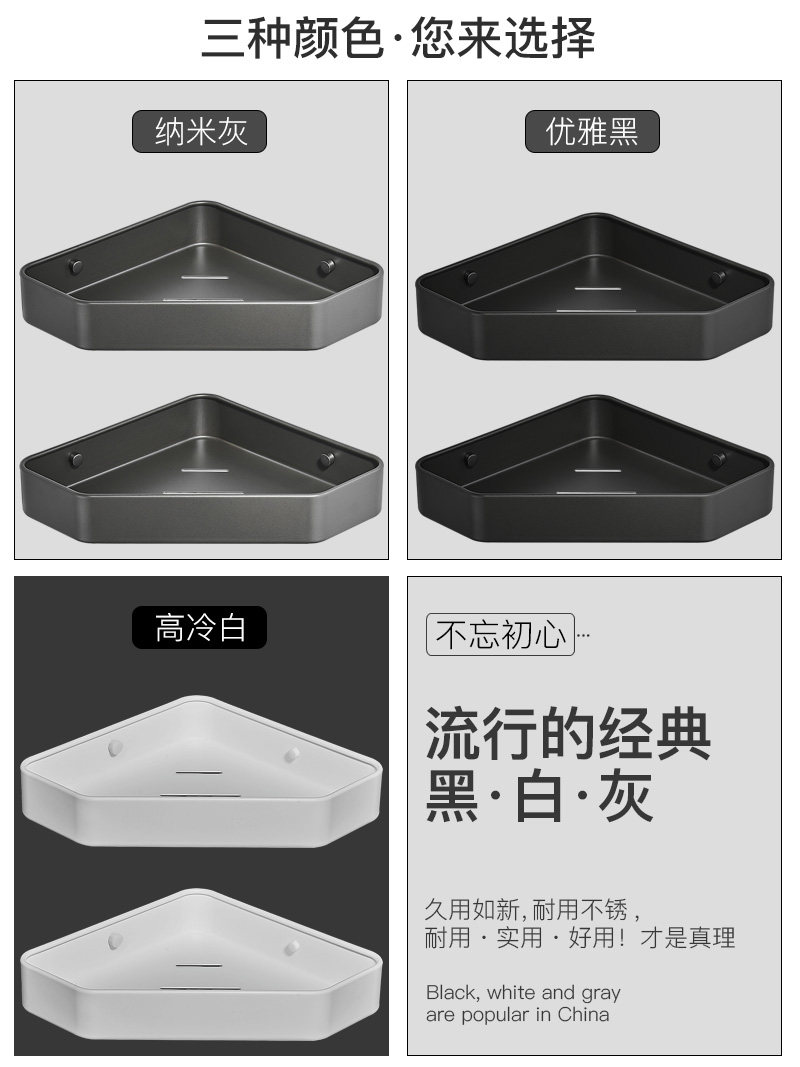 Gun Grey Perforated Bathroom Shelve Shower Room With Shower Room Make-up Room Bathroom Triangle Basket Corner Toilet Grey Containing shelf