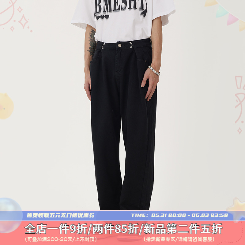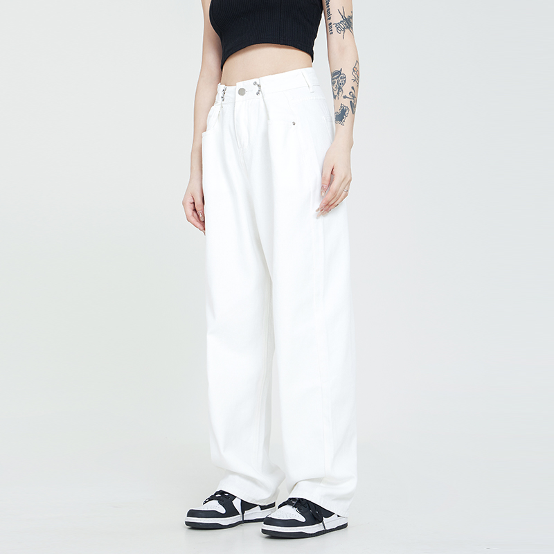 CTB Beer Captain American Retro White Jeans Men's Pants Loose Broadlegged Pants Woman High Waist Tide Signs