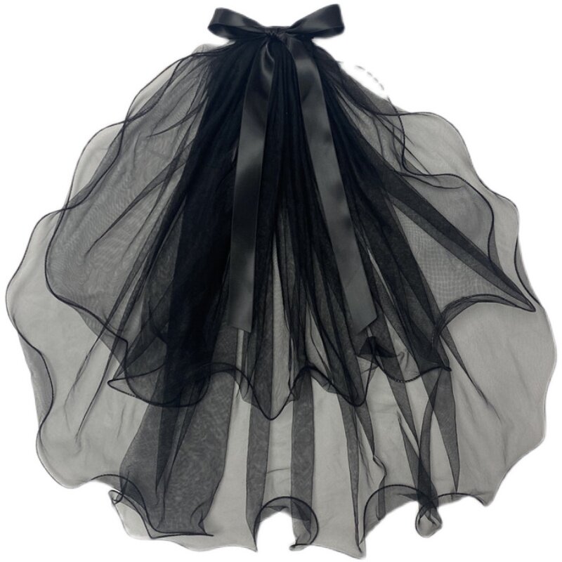 Dark Black Gothic Halloween COS Black Butterfly knot yarn Short style Playful Photo Gallery Photo Ornament Soft Yarn