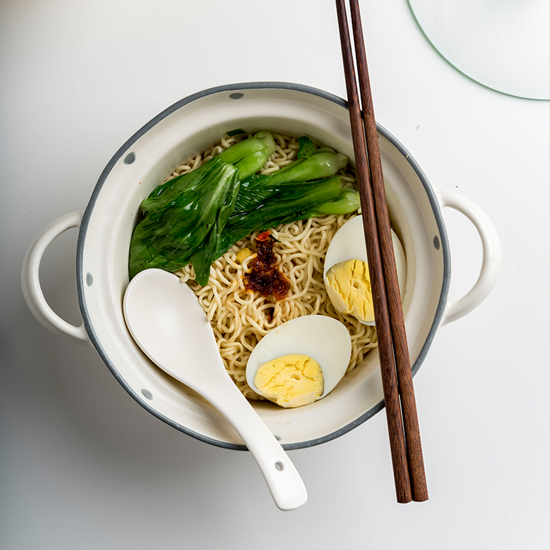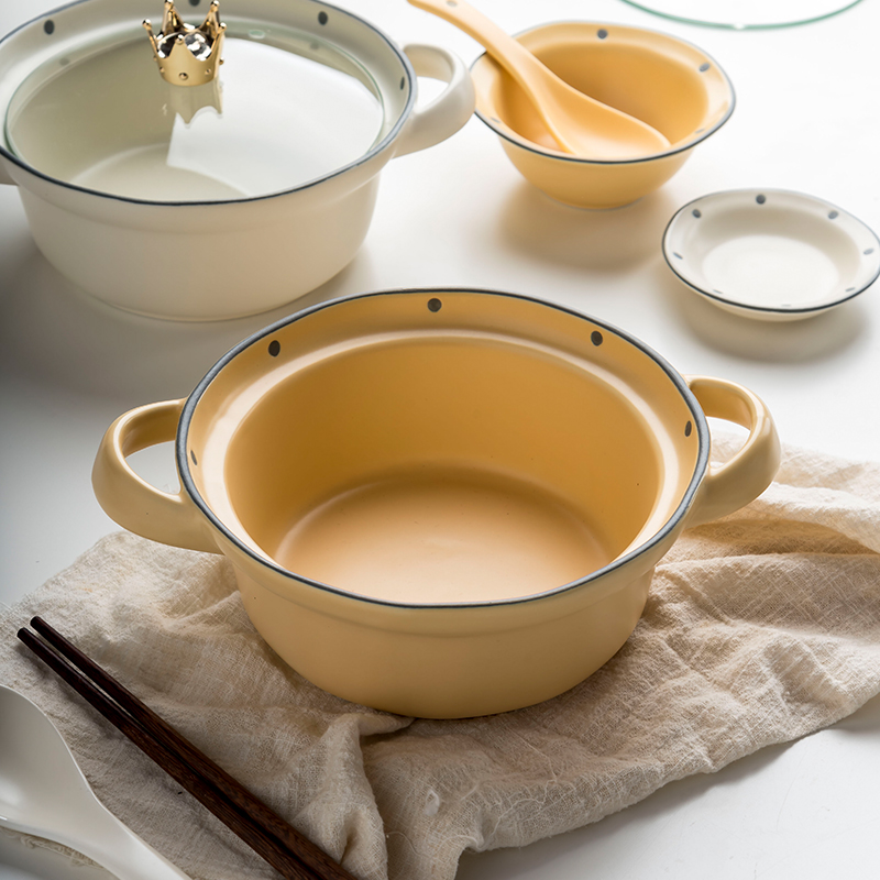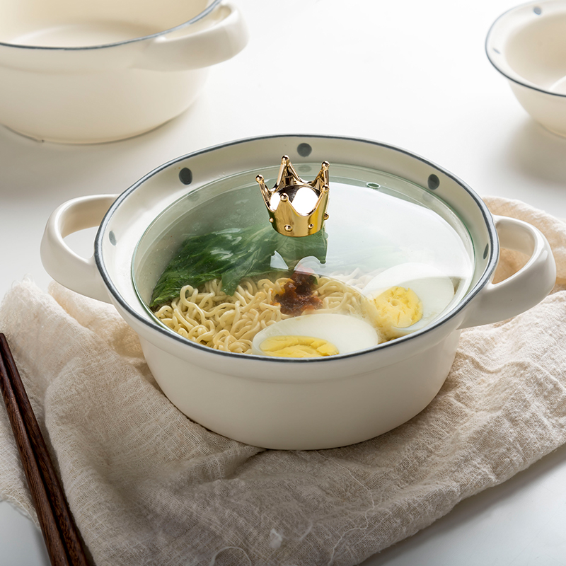 Japan-style Binaural Bowl With Lid Ceramic Foam Noodle Bowl Home Bowl Single Student Dormitory Soup Bowl Personality Bowl