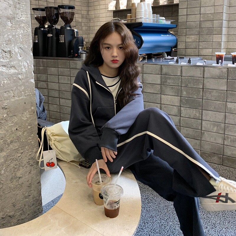 Tide 2023 Spring and Autumn New Sports Set girl with high temperament goddess casual suit two pieces