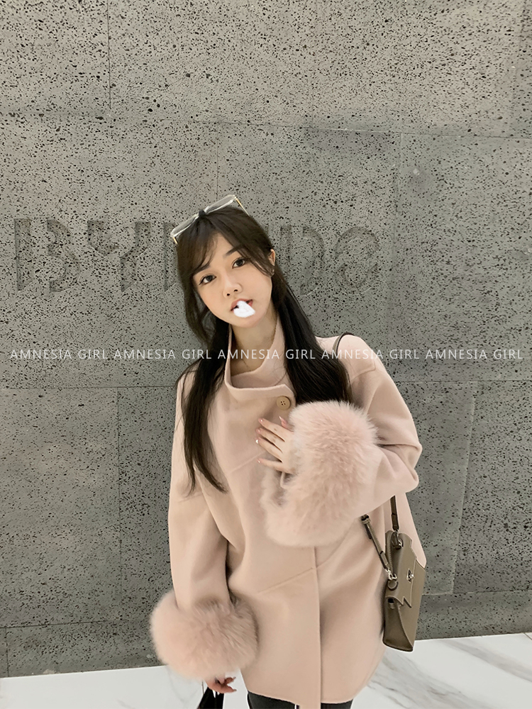 Eleven Girls Pink Cloak Wool Coat Women Winter Short Double-sided Wool Coat Small Loose Wool Coat