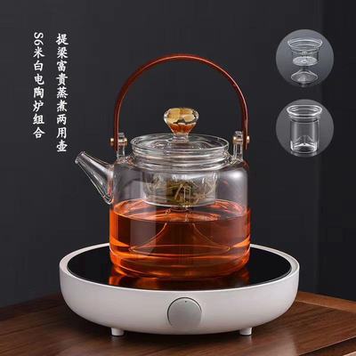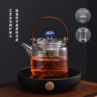 Glass pot Xinyu thickened high-temperature cooking teapot steam tea maker black crystal furnace tea furnace kettle set