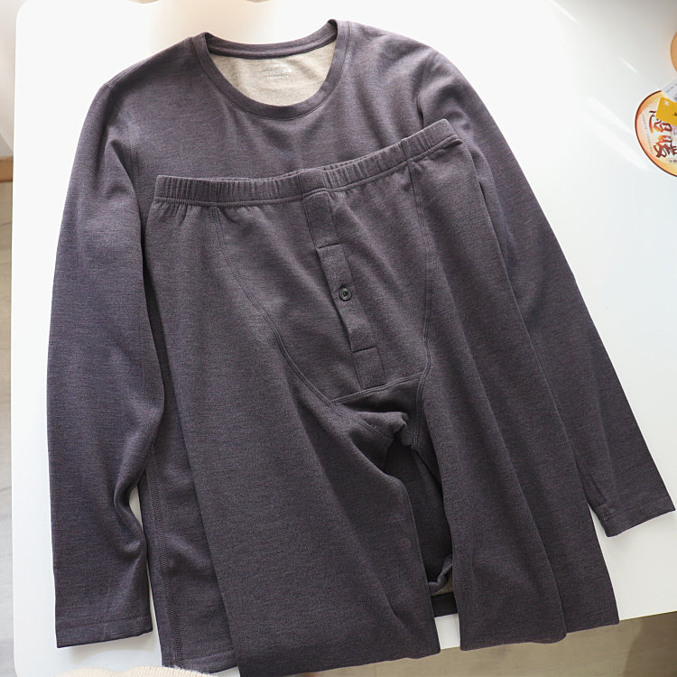 Shangke autumn and winter cashmere silk men's thermal underwear set autumn clothes long johns simple round neck long-sleeved cotton sweater
