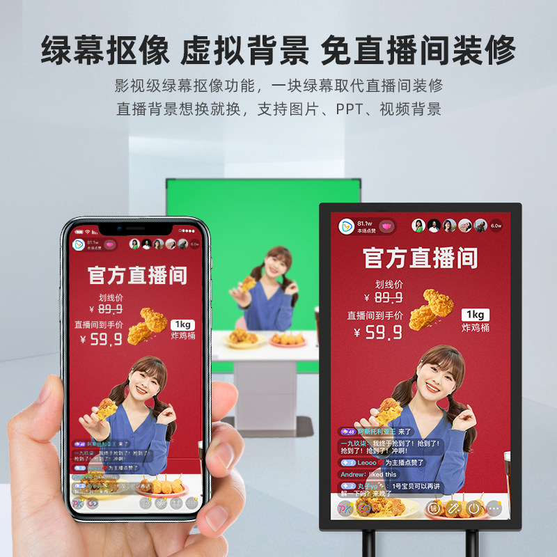 1 8G non-touch live broadcast machine projection screen mobile bracket 4G 32G touch live broadcast machine anti-control annotation four-touch teleprompter green screen stickers mobile bracket