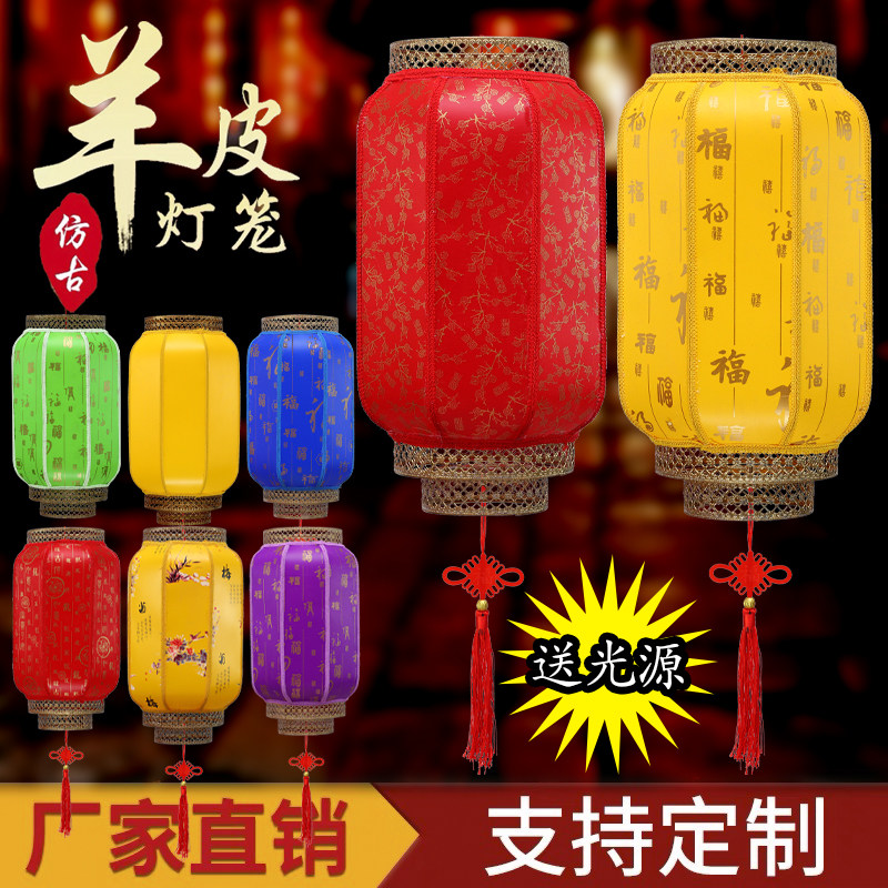 Outdoor Waterproof Decoration Goat Leather Lantern Advertisement Winter Melon Lantern Large Red Chinese Palace Lantern Imitation Ancient Iron Mouth Lantern Customized
