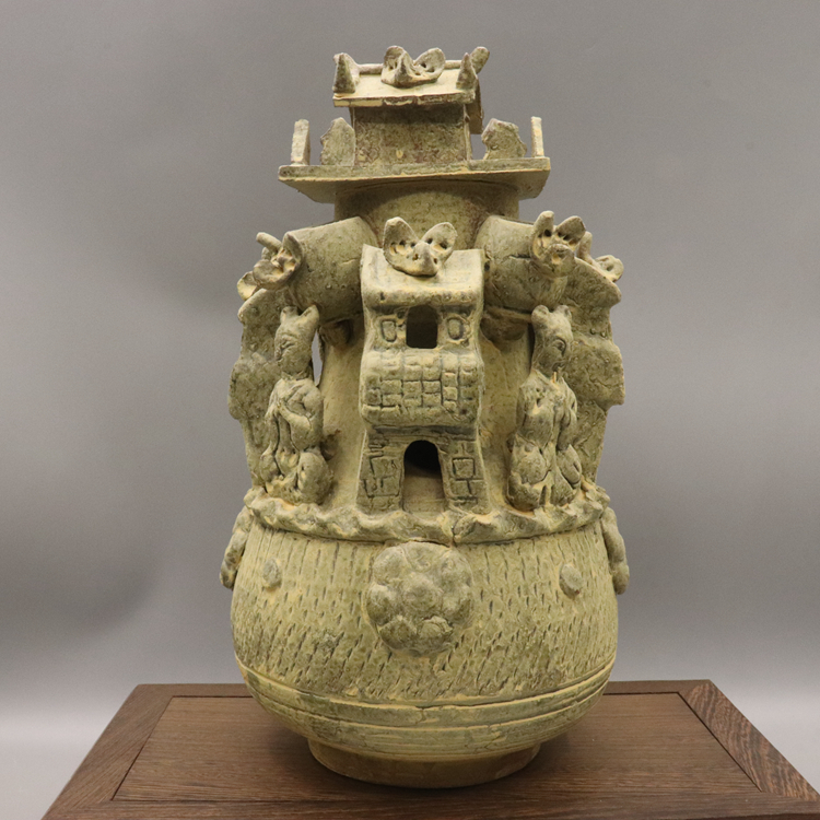 (all by hand) Song Yue Kiln Tianmen Tongle Valley Barn Ancient Play Antique Imitation Ancient Porcelain Unearthed Old Objects Collection
