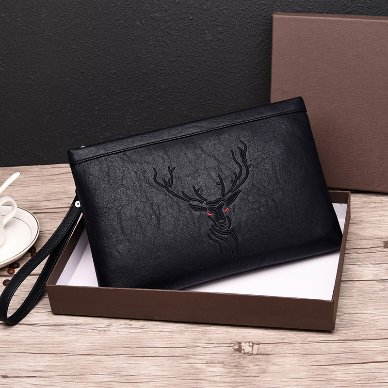 New trendy men's handbag youth soft leather clutch business casual clip bag Korean version large-capacity envelope clutch bag