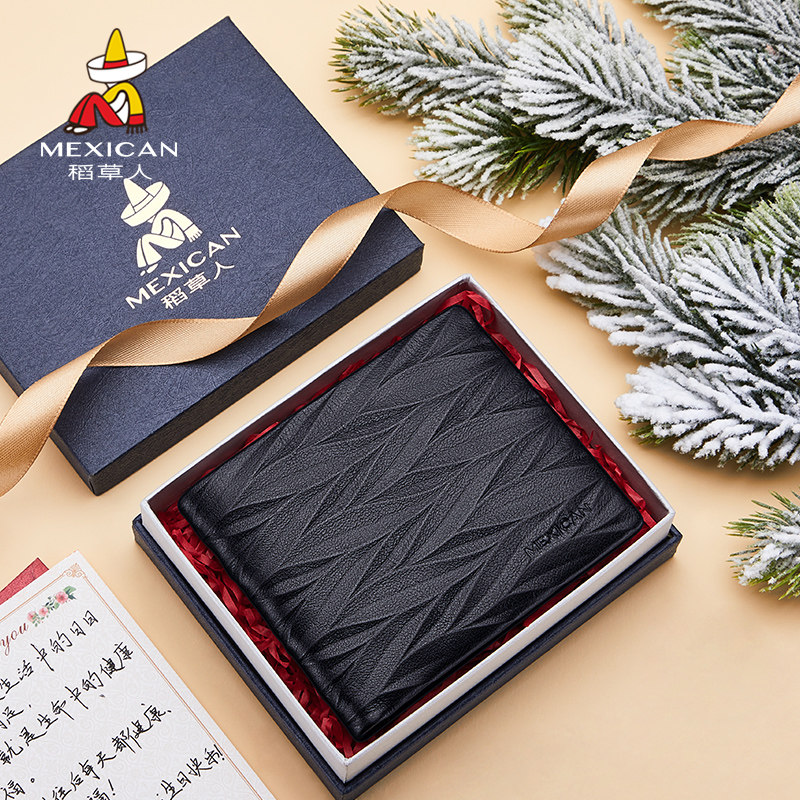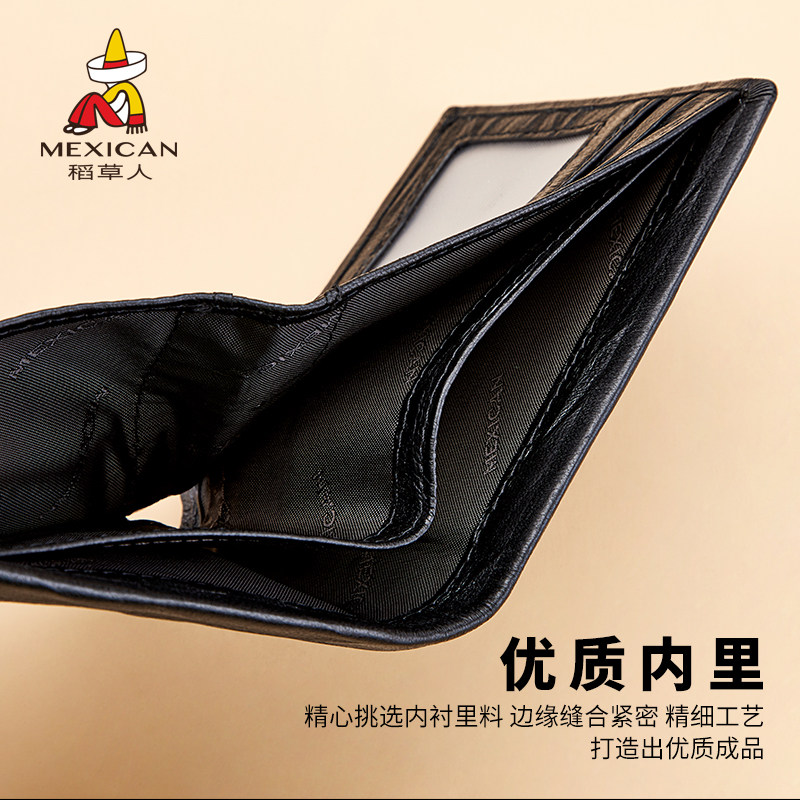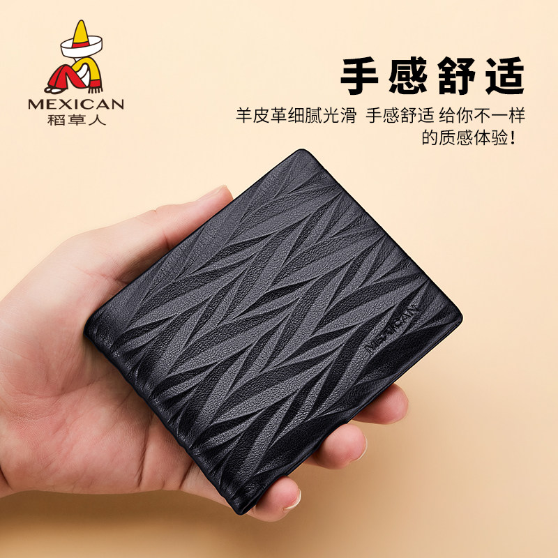 Rice straw man sheep leather short wallet men's large capacity 2023 new upscale trend college students brief fashion leather clip-Taobao