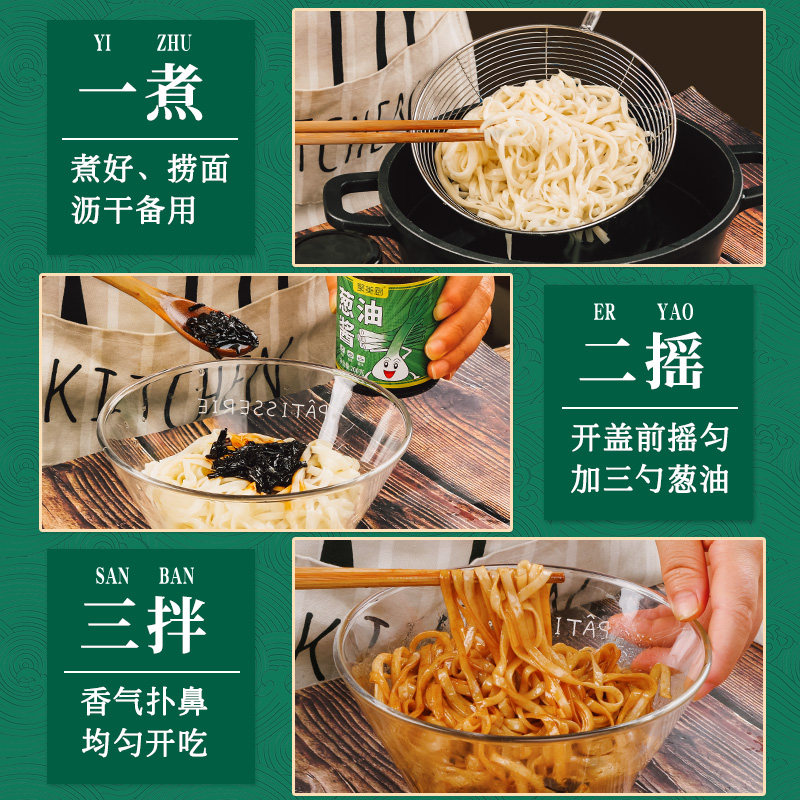 1 bottle of scallion sauce (free 3 packs of mustard) 2 bottles of scallion sauce (5 packs of mustard) 3 bottles of scallion sauce (8 packs of mustard) 1 bottle of scallion oil 5 packs of buckwheat instant noodles 1 bottle of scallion oil 10 packs of buckwheat soaked noodle