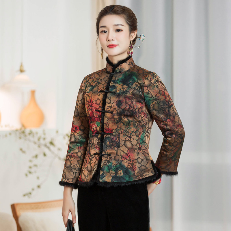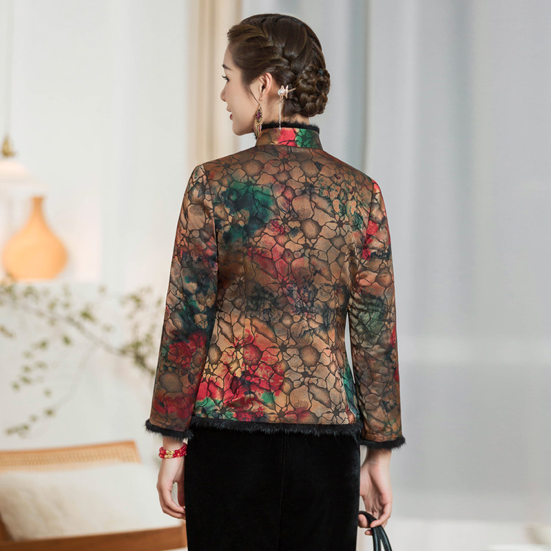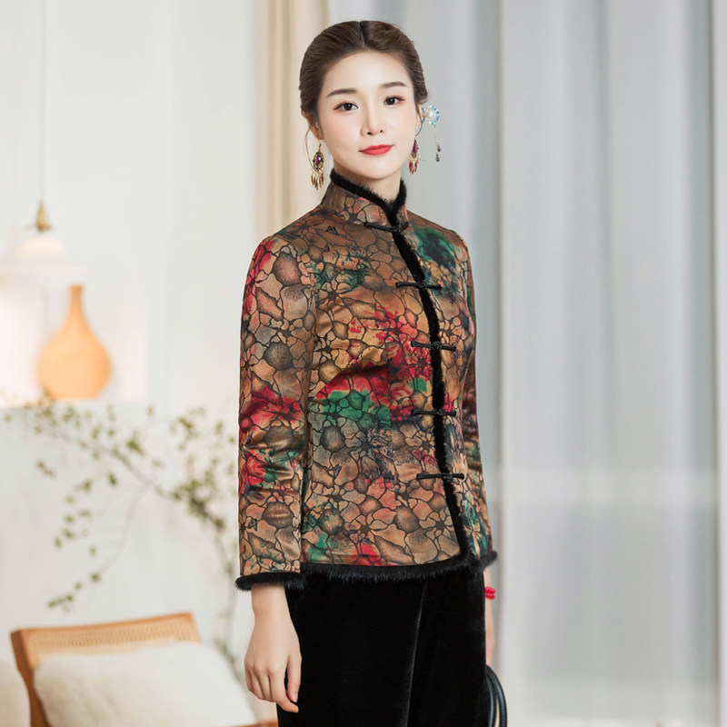 Chinese classic pair of brooded cotton qipao short cotton clothes autumn and winter new everyday elegant and thin thickened lady Tang dress blouses