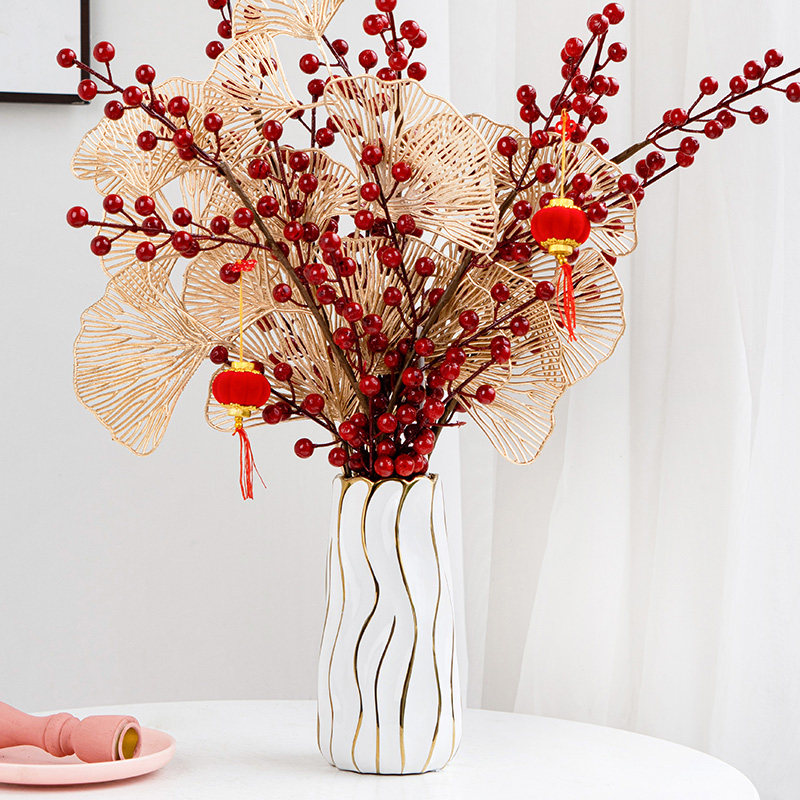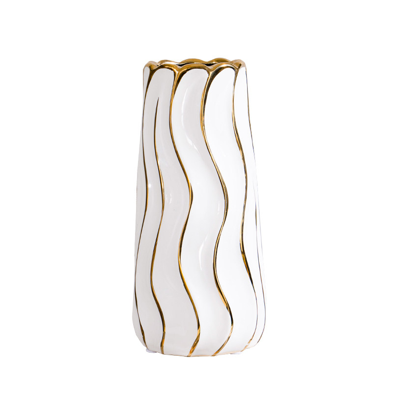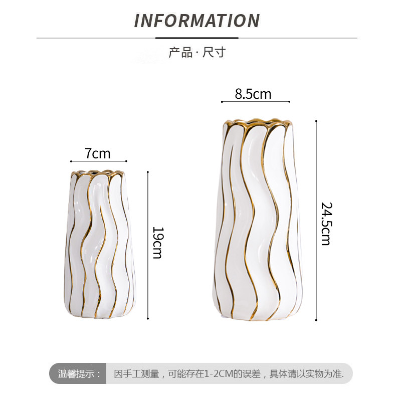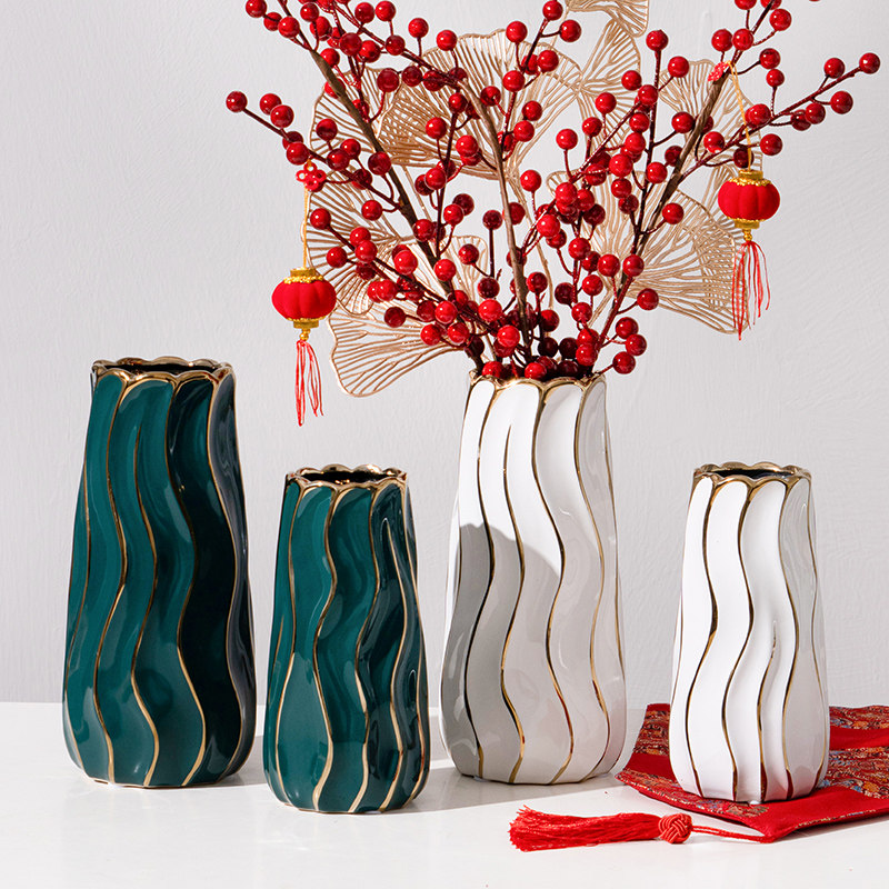 Vase ornaments light luxury depicting gold and white ceramic flower ware living room porch model room flower arrangement home table decorations