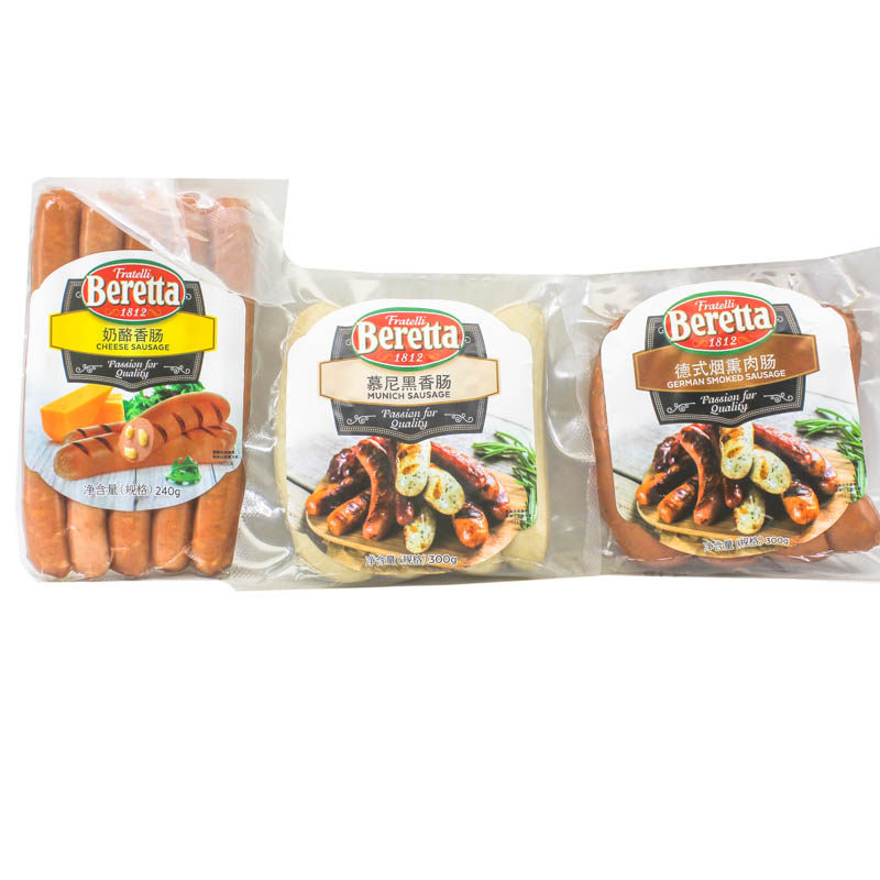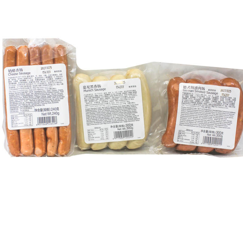 New date of 300g of Basil Sausage 300g New date of Cheesesausage 240g of German Smoked Sausage 300g New Date of 300g of Munich Sausage 300g New Date of Spanish-style Sausage 300g
