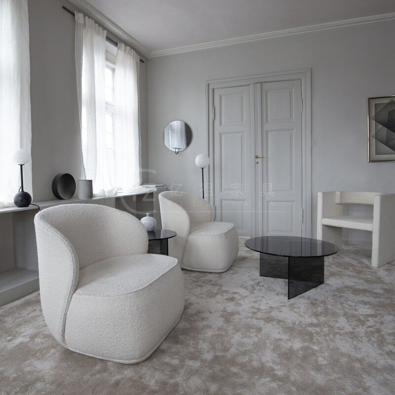Italian minimalist fabric leisure chair balcony lazy single chair designer modern light luxury living room lamb velvet master chair